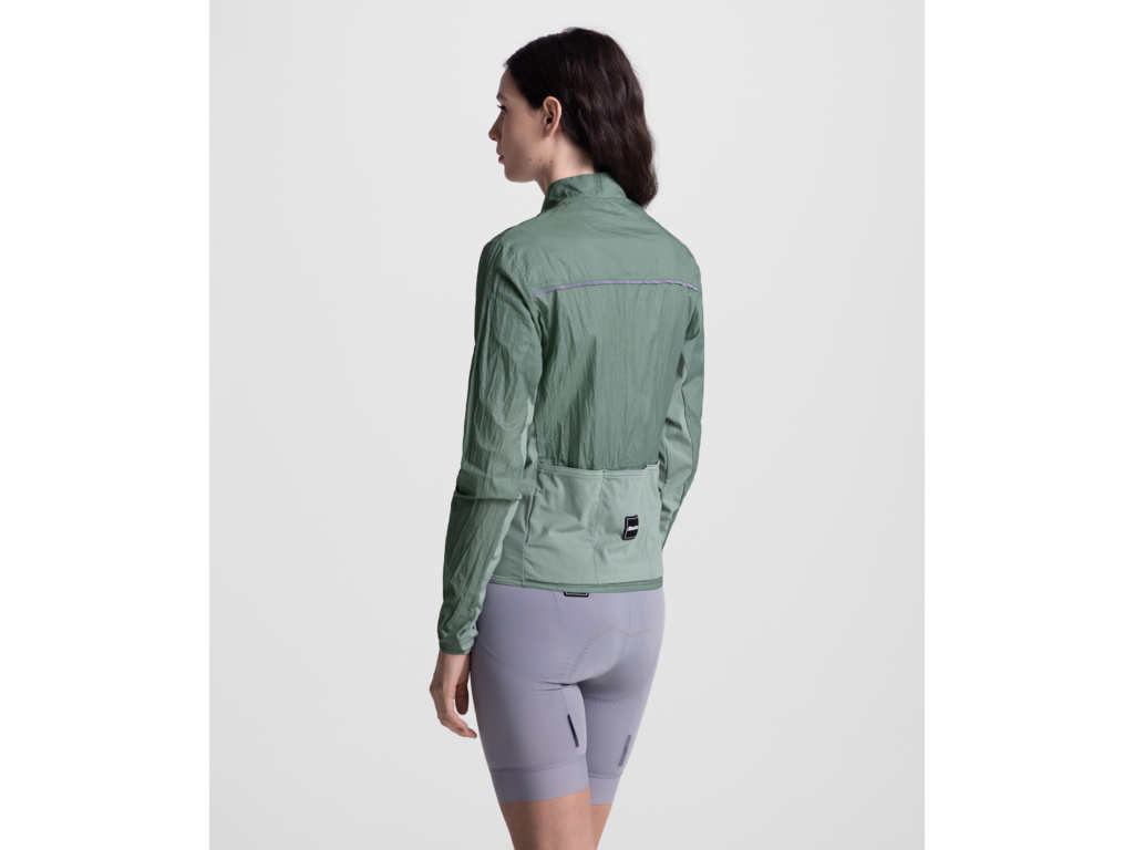 Lehká větruodolná bunda SANTINI RTR Wind s přiléhavým střihem, reflexními prvky a zadními kapsami je ideální volbou pro proměnlivé jarní a podzimní podmínky – snadno sbalitelná a připravená kdykoli zasáhnout.