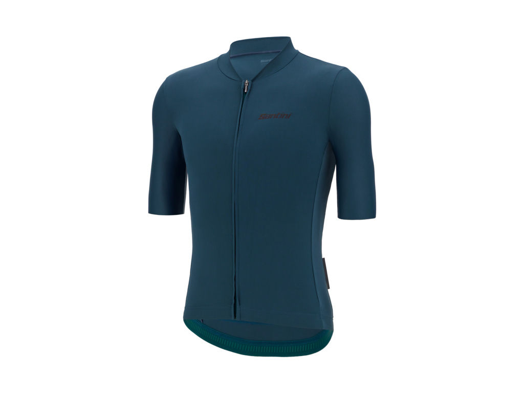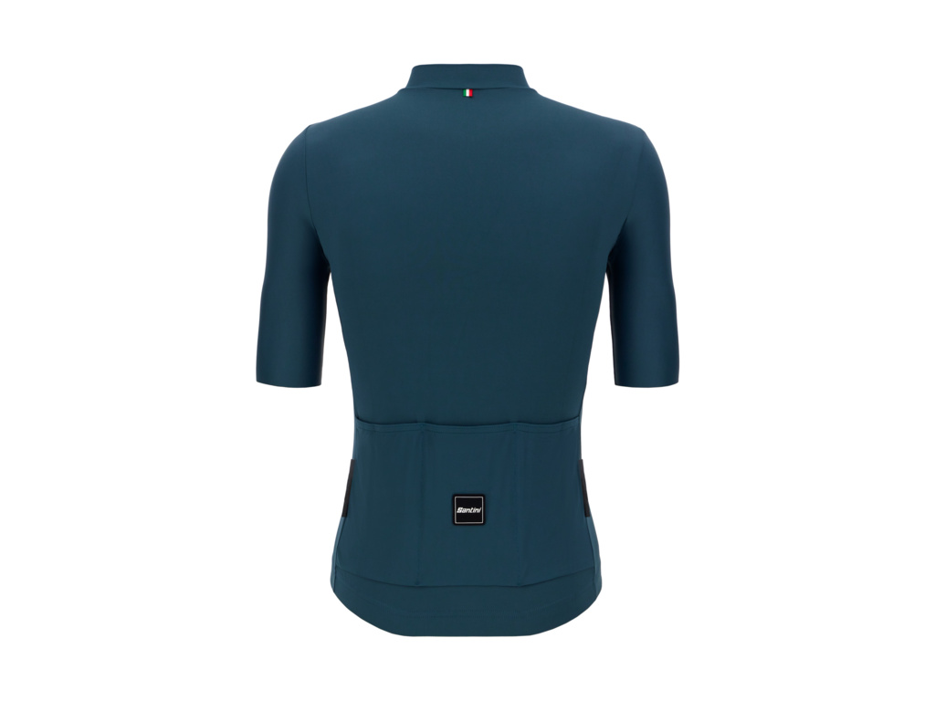 Lehký unisex cyklistický dres SANTINI Sensation z pružného materiálu s pohodlným střihem, raw-cut rukávy a třemi kapsami. Ideální na dlouhé letní vyjížďky, s reflexními prvky a ochranou UPF50+.