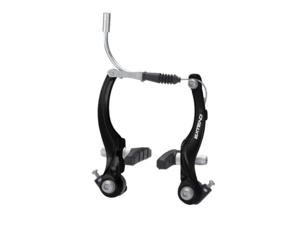Kompletní sada přední a zadní MTB / Trekking / City brzdové čelisti, vyrobené z kované duralové slitiny. Délka ramena 110 mm, lineární regulační pružiny, 60 mm závitové symetrické brzdové špalky s výškou nastavení 20 - 38 mm.