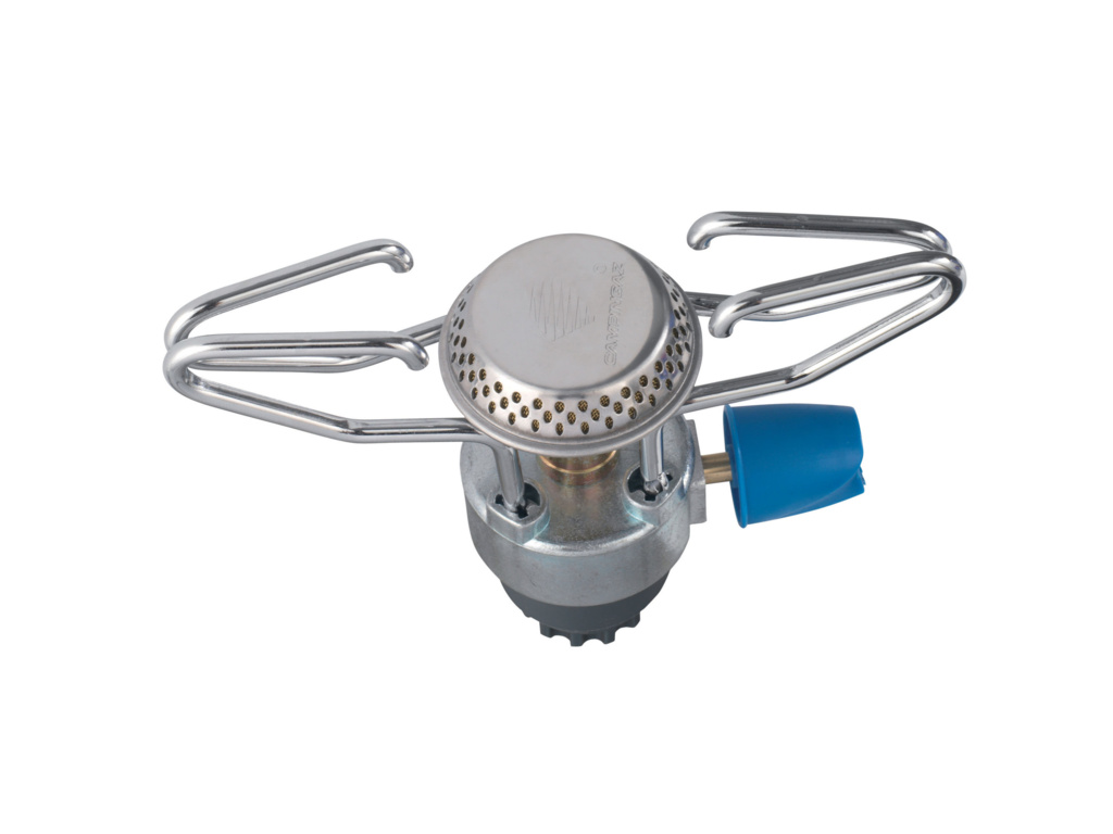 Turistický kartušový vařič s připojením Easy Clic® Plus. Sklopné raménka pro snadný transport. Ergonomický knoflík pro snadnou manipulaci.