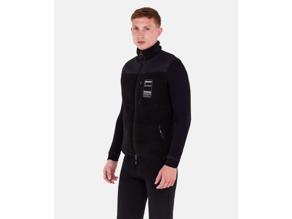 Vesta SANTINI Ovis je vyrobena z exkluzivního materiálu Polartec® Thermal Pro Shearling Fleece. Vrstvená struktura této recyklované látky a syntetické příze vytváří tepelné vzduchové kapsy, které udržují teplo a umožňují prodyšnost. Vesta je neuvěřitelně teplá, disponuje větruodolnou nylonovou vrstvou na hrudi a ramenou pro dodatečnou ochranu. Vybavena dvěma předními kapsami na zip a kapsou na hrudi se pyšní praktičností a stylem při zachování měkkého a luxusního pocitu.