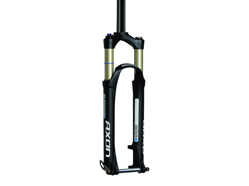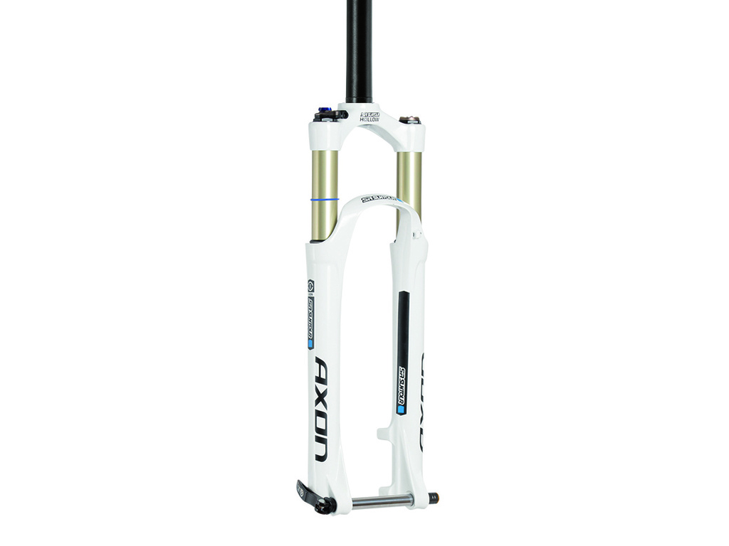 Magnéziové vnější nohy s pevnou patnáctimilimetrovou osou, hliníkové vnitřní kluzáky a konečně hliníková korunka s kónickým sloupkem řízení patří k tomu nej co může Axon nabídnout. Axon ani ve svém cenově dostupnějším, stále však velmi lehkém a odolném provedení nerezignoval na nejnovější technologie a nabízí do puntíku vše, co od moderní vidlice očekáváte. U nejvýše postavených verzí Elite k tomu všemu dále připočtěte dutou horní korunku a pevnou titanovou osu.