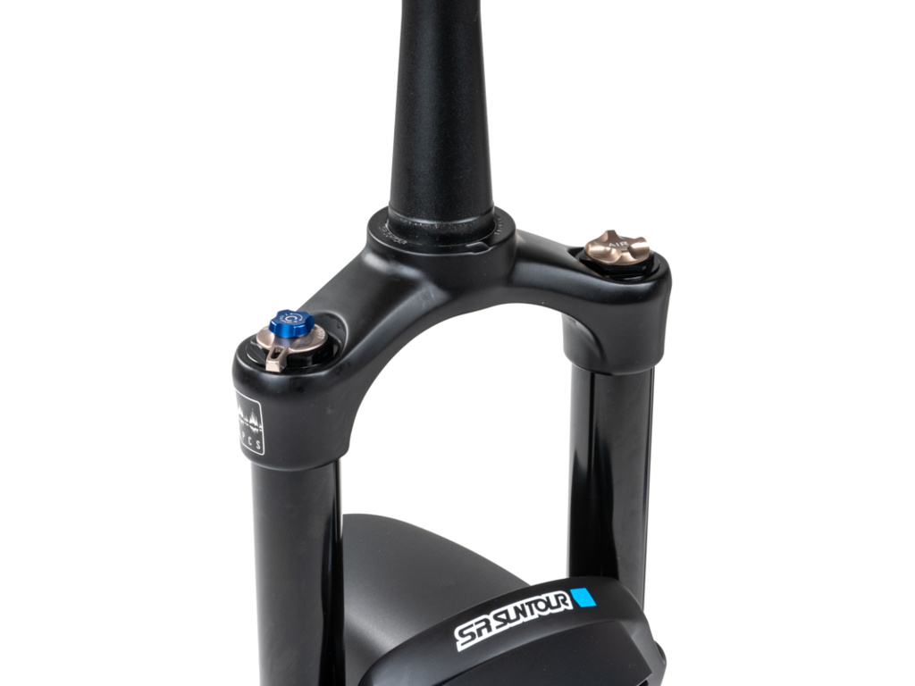 Magnéziové vnější nohy s pevnou patnáctimilimetrovou osou, hliníkové vnitřní kluzáky a konečně hliníková korunka s kónickým sloupkem řízení patří k tomu nej co může Axon nabídnout. Axon ani ve svém cenově dostupnějším, stále však velmi lehkém a odolném provedení nerezignoval na nejnovější technologie a nabízí do puntíku vše, co od moderní vidlice očekáváte. U nejvýše postavených verzí Elite k tomu všemu dále připočtěte dutou horní korunku a pevnou titanovou osu.