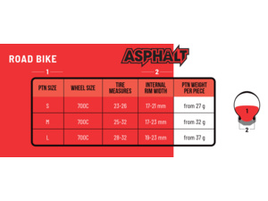 PTN Asphalt je řada vložek s ultralehkým odolným pěnovým insertem pro nejvyšší úroveň přesnosti řízení v silničních disciplínách. Díky dokonalému tlumení plášťů zažijete jízdu bez vibrací, zároveň PTN slouží jako perfektní ochrana ráfků i plášťů a potěší vás snadnou montáží a demontáží.