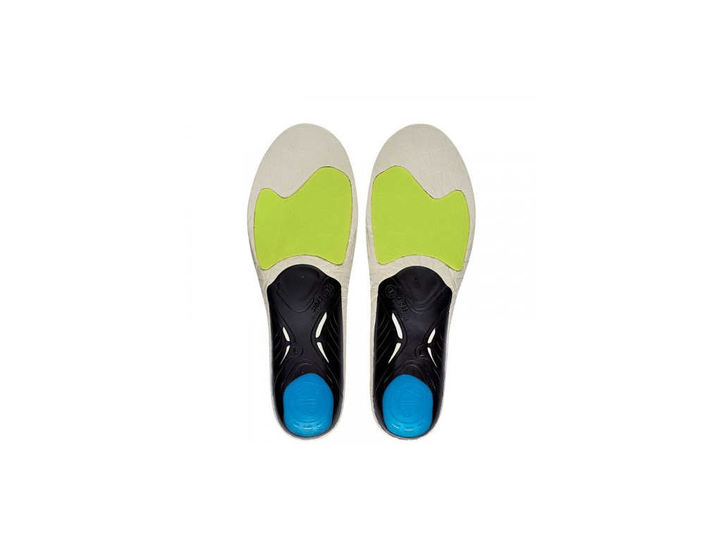 Běžecké vložky do bot s gelovým polštářkem pod patou, který zajišťuje tlumení nárazů na patní kost. EVA materiál pod klouby v přednoží napomáhá lepšímu odrazu. Ortopedicky tvarovaná podpora podélné klenby zajišťuje větší stabilitu pro bezpečný běh. Podpora klenby je dostatečně flexibilní, takže neomezuje přirozený pohyb chodidla v průběhu běhu. Antibakteriální a omyvatelný povrch.