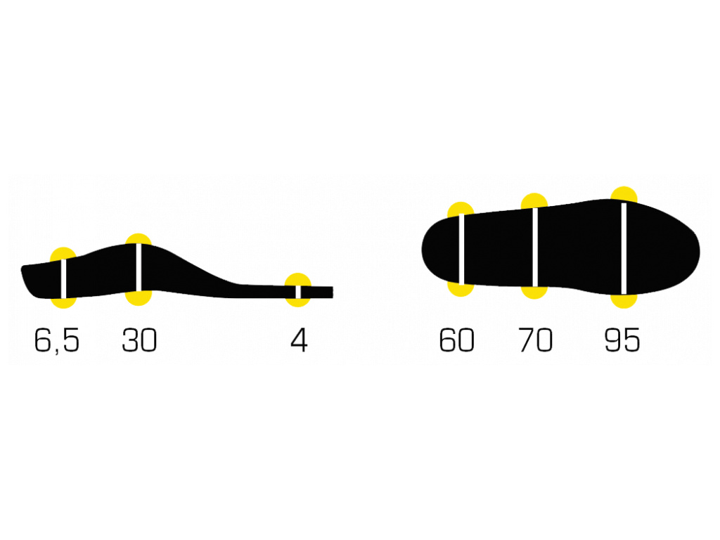 • Zpevnění střední části chodidla (TPU): stabilizuje a kontroluje krok
