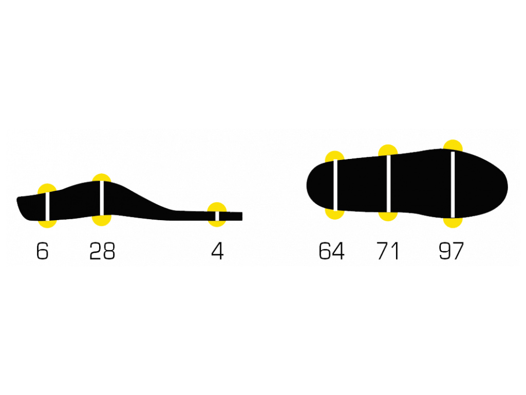 • Struktura přední části chodidla (EVA pryž) zvyšuje výkon