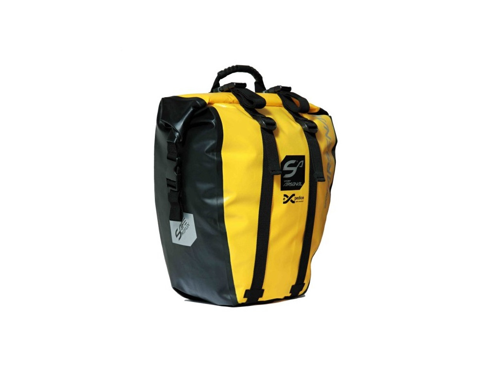 Super expediční brašny na kolo, pro masochisty, jsou opravdu velké a můžete si tam dát pořádnou zátěž ;) Mám běžný nosič, nemám originál od arsenalu, ale brašny tam sednou, jen místo 30kg má nosnost 25kg, což je pořád dost na cestu po Norských fjordech. Šťastnou cestu ;)