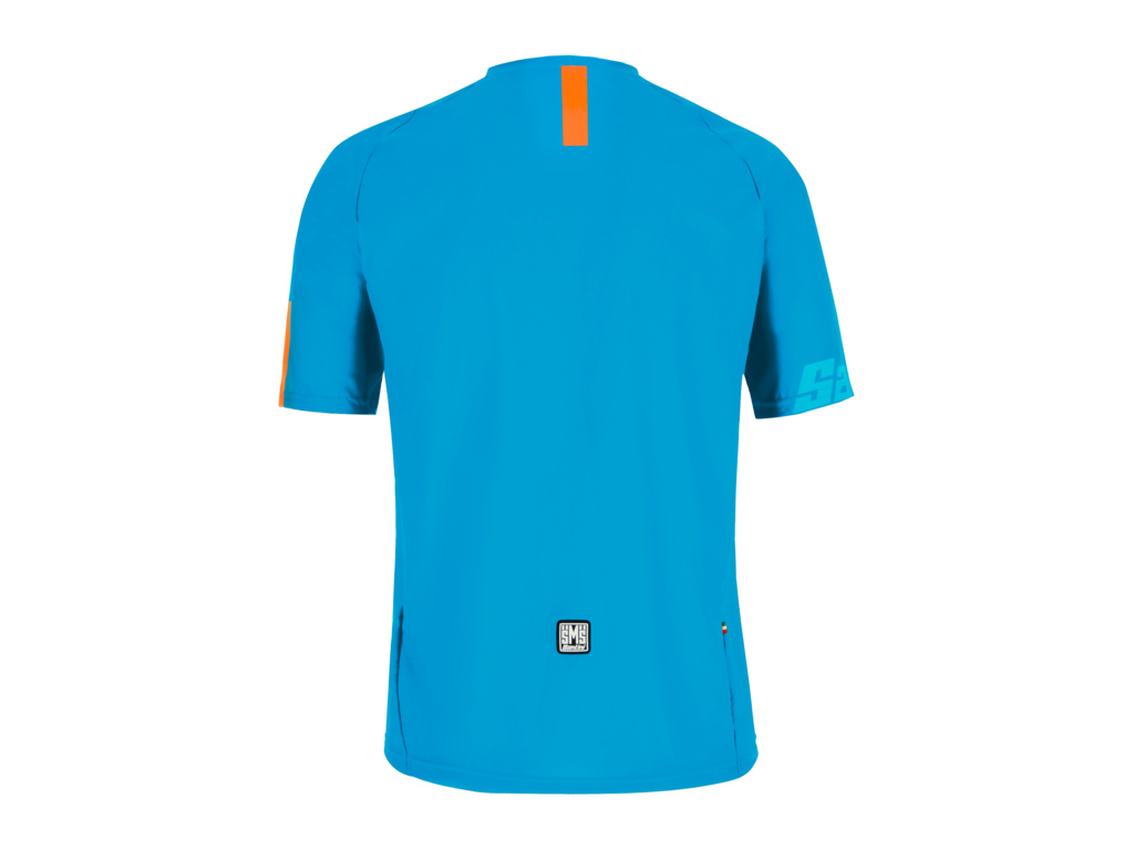 SANTINI MTB Sasso Jersey je dres, který vás nebude omezovat v terénu. Je volný a lehký s kulatým límcem pro větší pohodlí a prodlouženými zády pro perfektní krytí pod batohem. Model je vyroben ze speciální látky, která je odolnější vůči oděru způsobenému drsným ježděním nebo odřením batohem. Nejen praktická, ale i stylová záležitost.