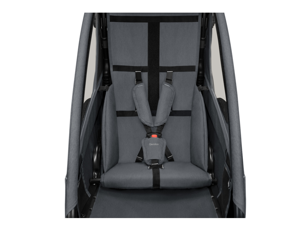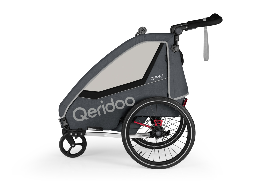 Jednomístný odpružený dětský vozík za kolo Qeridoo Qupa1. Nabízí komfortní sedadlo s adaptivním 5-bodovým pásem a kočárkové kolečko Multiwheel s funkcí aretace. Doporučujeme pro děti s maximální výškou 116,5 cm.