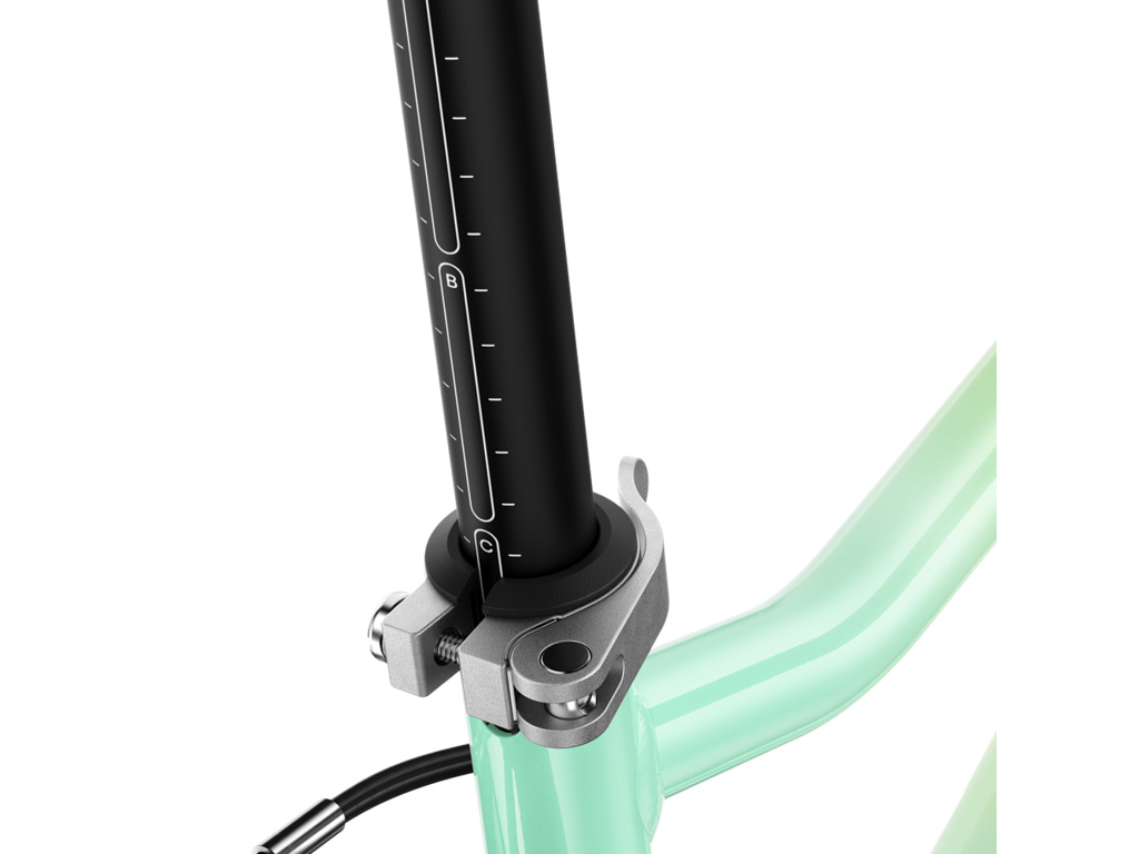 Sedlovka i představec jsou označené písmeny A, B a C, díky čemuž snadno nastavíte správný posed na kole a jízda tak bude pro dítě pohodlná a přirozená. Kvalitní gripy mají úzký průměr a ergonomický design. Zajistí tak pevný úchop i drobným dětským rukám. Speciální materiál a rozšířené vnější konce chrání ruce a snižují riziko zranění při pádu.