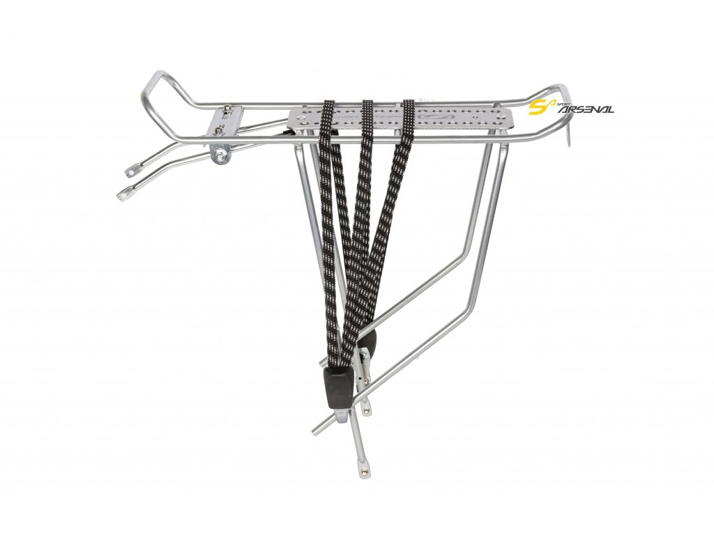 Lehký nosič Sport Arsenal Art. 022 ze základní turistické řady s hliníkovou ložnou plochou. Umožňuje snadnou montáž na malé i velké rámy. Použití tenkostěnných ocelových trubek zajišťuje dostatečnou nosnost i tuhost.