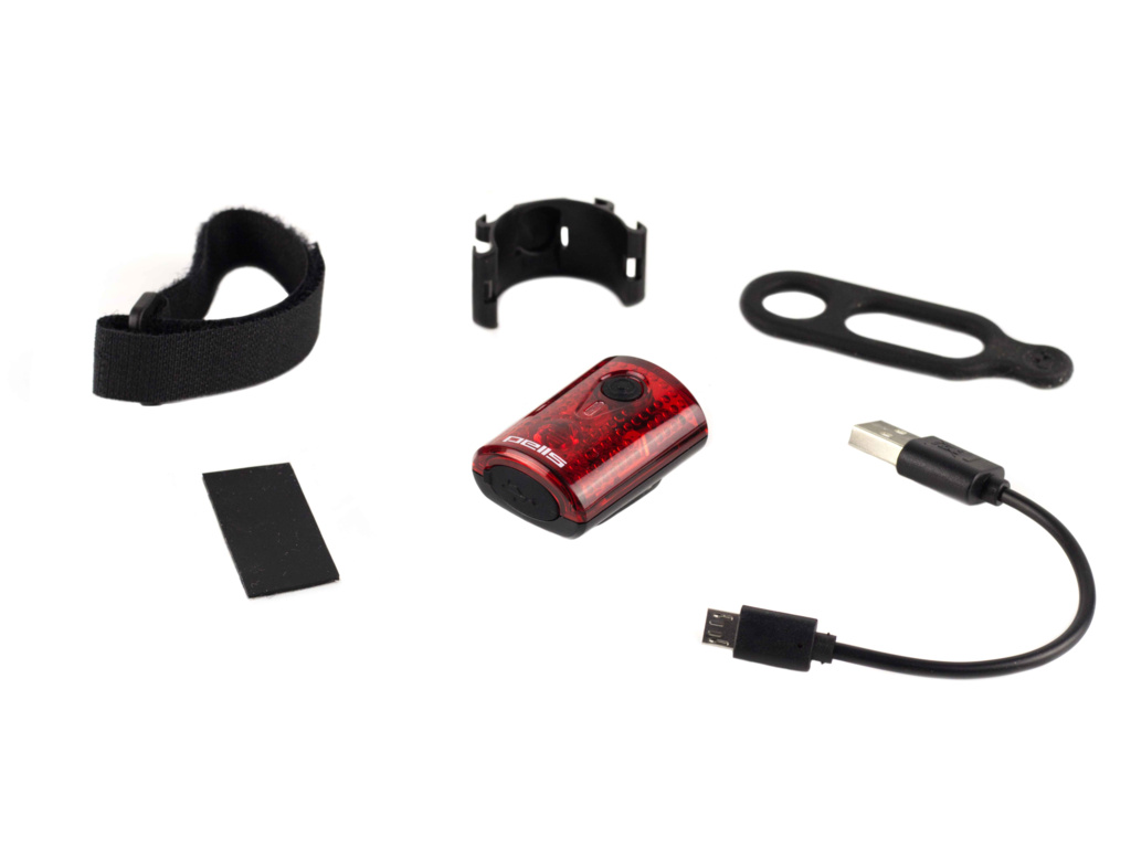 Zadní světlo PELLS Rubio 15 zajišťuje viditelnost v okruhu 220°. Díky tomu budete jasně vidět z mnoha úhlů. Zadní světlo nabízí 4 funkce a přepínáním si vybíráte mód od maximálního výkonu až po blikačku. Výdrž světla je 2–25 hodin a je závislá na zvoleném módu. Zadní světlo má výkon 15 lumenů. Nabíjení je snadné pomocí USB kabelu.