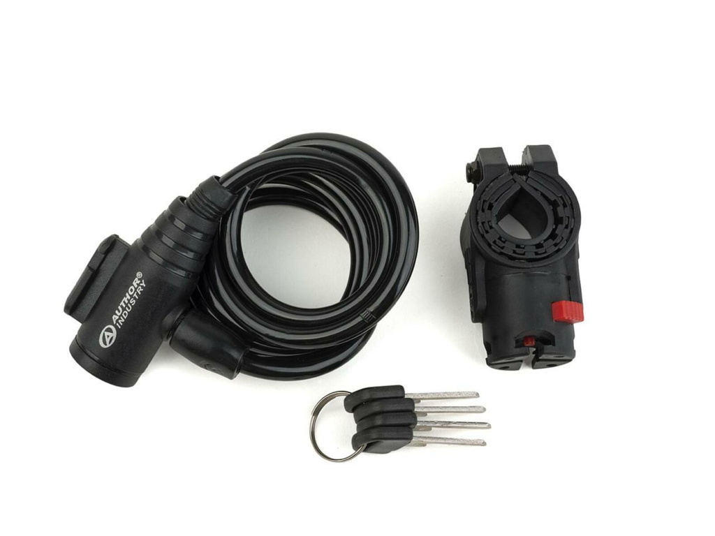 Spirálový zámek s univerzálním otočným držákem na sedlovku, lanko ocel l. 1500mm.