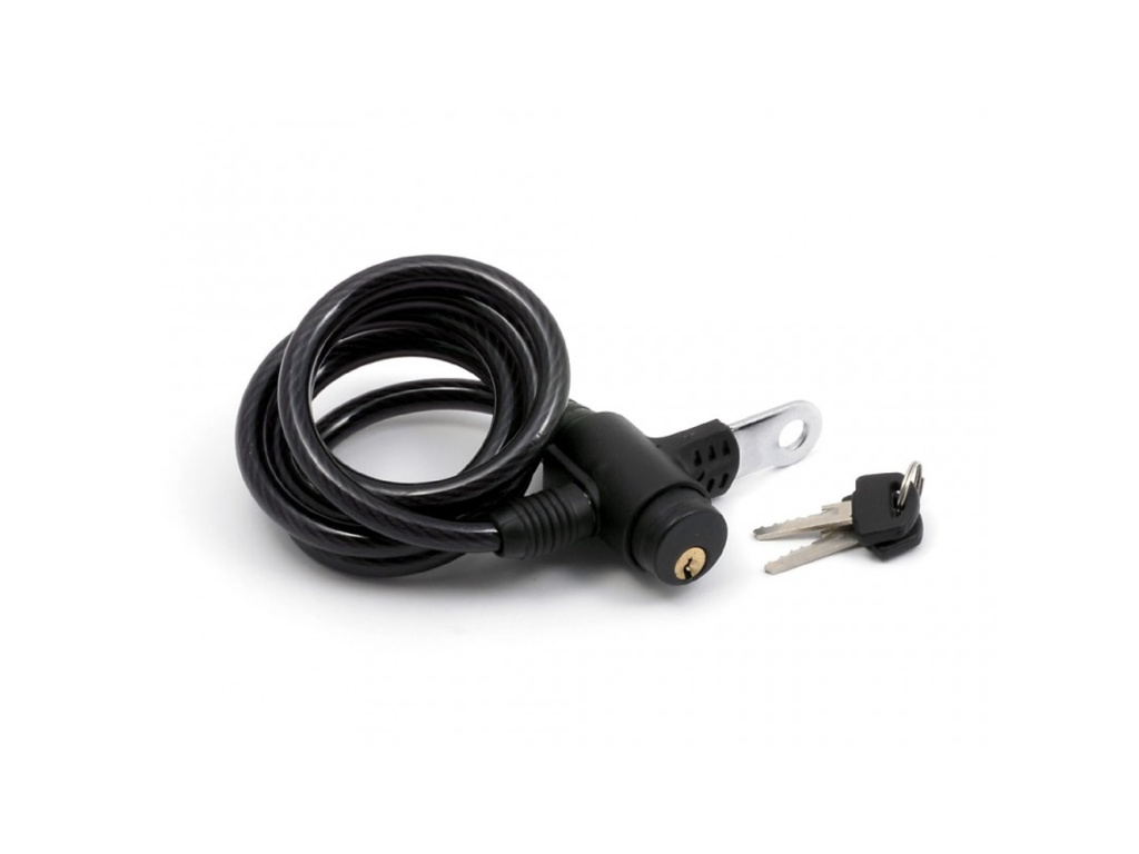 Spirálový zámek s univerzálním držákem na podsedlový RU, lanko ocel l. 1000 mm, 2x klíč.