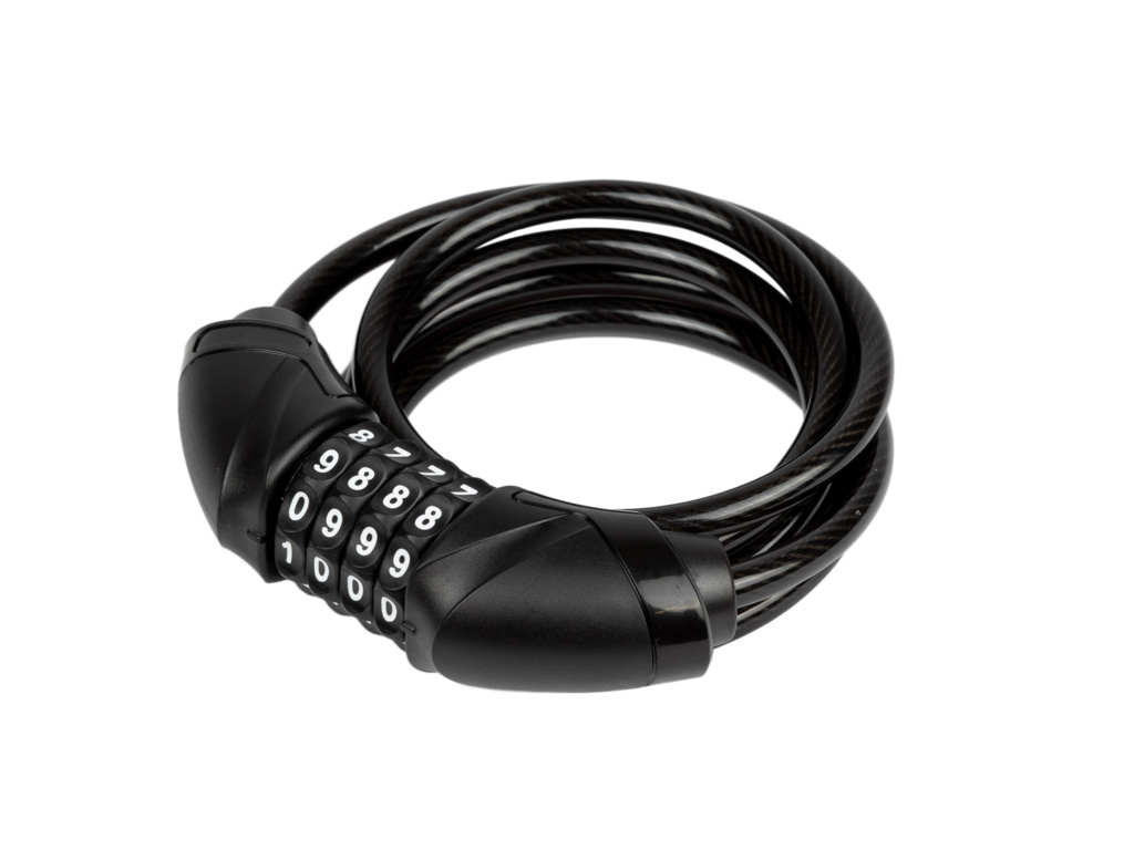 Spolehlivý spirálový zámek na čtyřmístný kód s průměrem lanka 8 mm