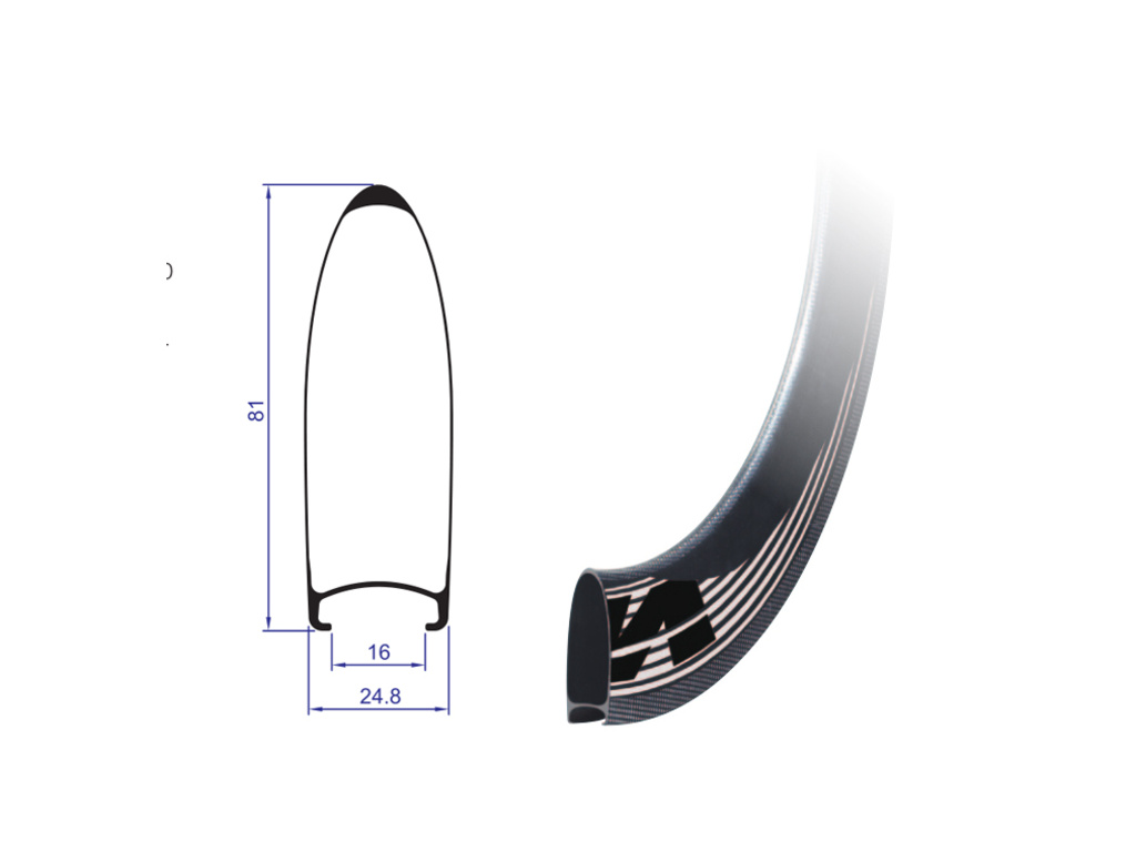 Základem kol Vision Metron 81 SL Clincher jsou 81 mm vysoké aerodynamické bezdušové plášťové ráfky vyrobené z UD karbonu s vnitřní šířkou 17 mm a speciální úpravou brzdné plochy, díky tomu se výrazně zlepšili brzdné vlastnosti za sucha i za mokra.